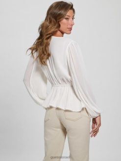 GUESS נשים טופ אקו הרה F8RV1646 לבוש לבן שמנת