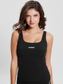 GUESS נשים טופ ארוך של brigit אקטיבי F8RV1335 לבוש שָׁחוֹר