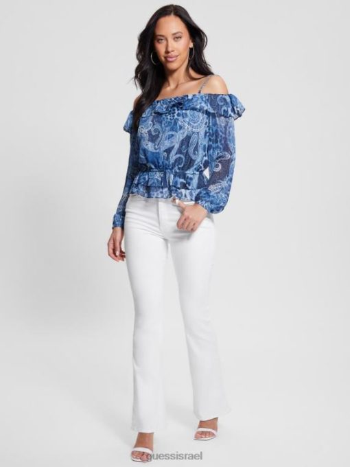 GUESS נשים טופ לוסי אקולוגי מחוץ לכתף F8RV1075 לבוש קשמיר הים הנורדי