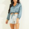 GUESS נשים טופ מישלין F8RV1228 לבוש יין מיסטי