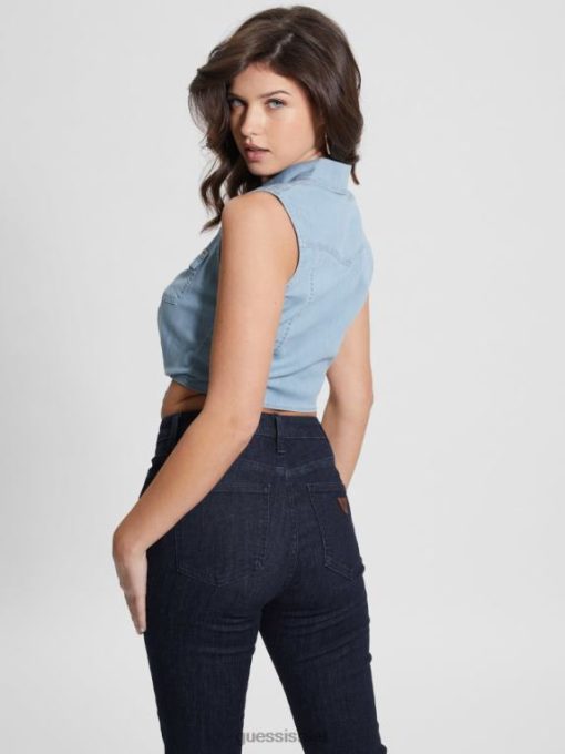 GUESS נשים טופ מערבון קלאסי F8RV102 לבוש שטיפת מדנו