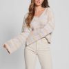 GUESS נשים טופ סוודר ניקול F8RV1475 לבוש לבן שמנת
