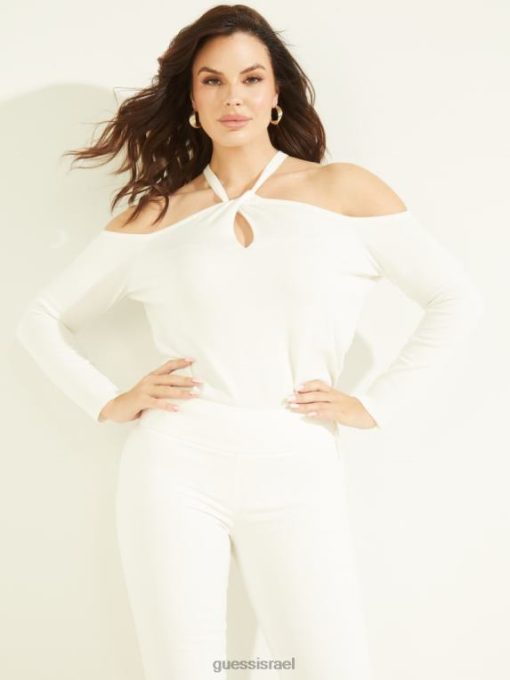 GUESS נשים טופ סוודר פריה עם כתף קרה F8RV1720 לבוש פנינה חיוורת