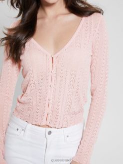 GUESS נשים קרדיגן eve סריג F8RV954 לבוש לורקס ורוד מפתח נמוך
