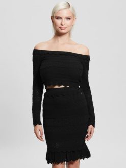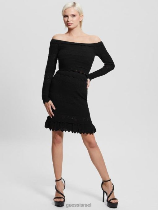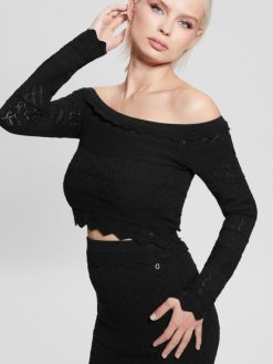 GUESS נשים טופ סוודר deeta אקולוגי פוינטל F8RV1508 לבוש שָׁחוֹר