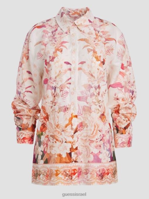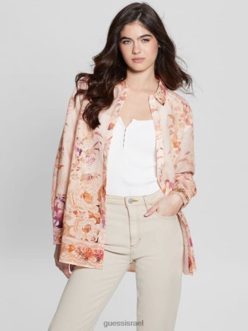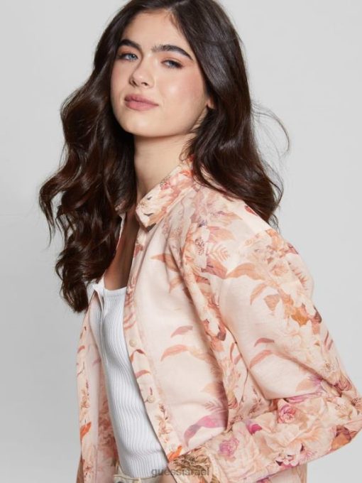 GUESS נשים טופ פשתן ורוד אקולוגי F8RV1136 לבוש כבש מחדש את הרומנטיקה