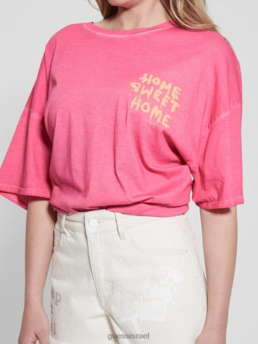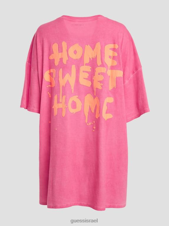 GUESS נשים טי טרקלין ביתי מתוק F8RV1037 לבוש בולט ורוד פוקסיה מול