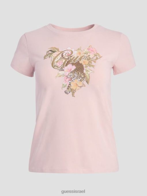 GUESS נשים טי לוגו היביסקוס אקולוגי F8RV1700 לבוש ורוד רגוע