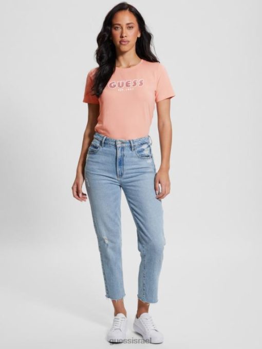 GUESS נשים טי לוגו יהלומים עם צווארון אקולוגי F8RV962 לבוש ורד אבקה