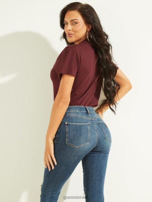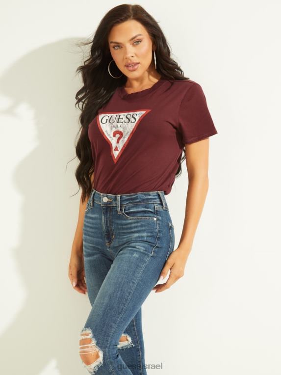 GUESS נשים טי לוגו משולש אקולוגי F8RV1704 לבוש יין מיסטי