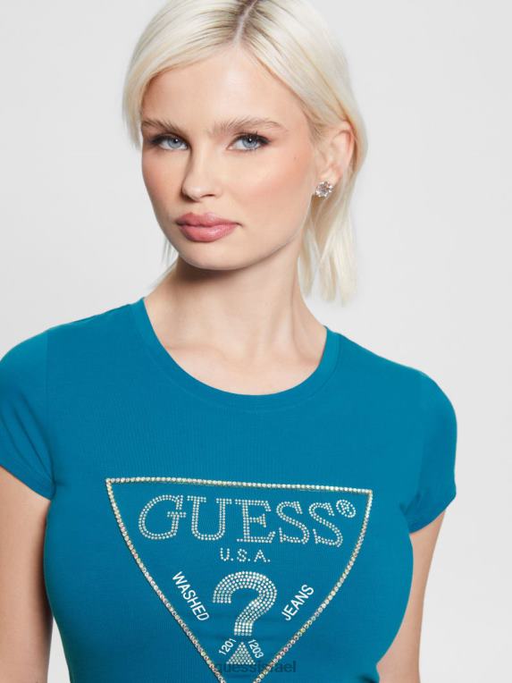 GUESS נשים טי לוגו ריינסטון F8RV1452 לבוש מרינה כחול