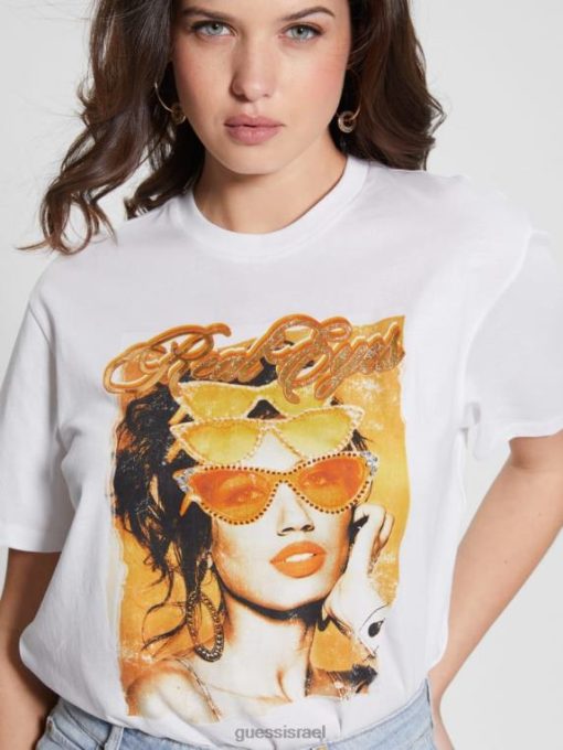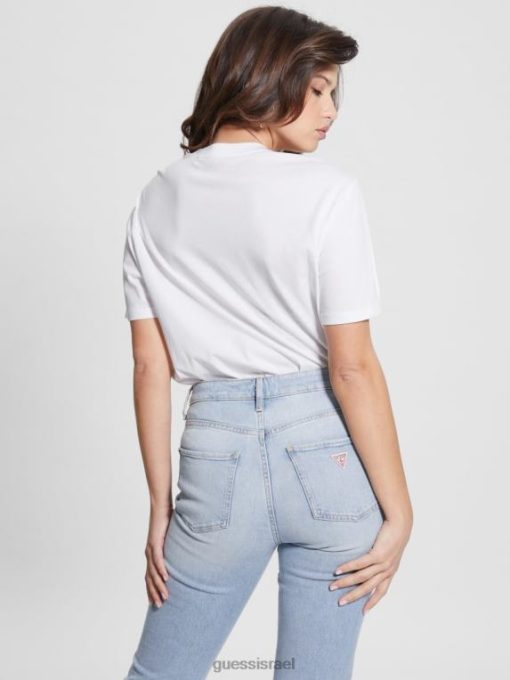 GUESS נשים טי צווארון אמיתי לעיניים F8RV1100 לבוש לבן טהור
