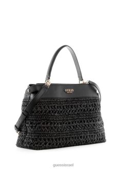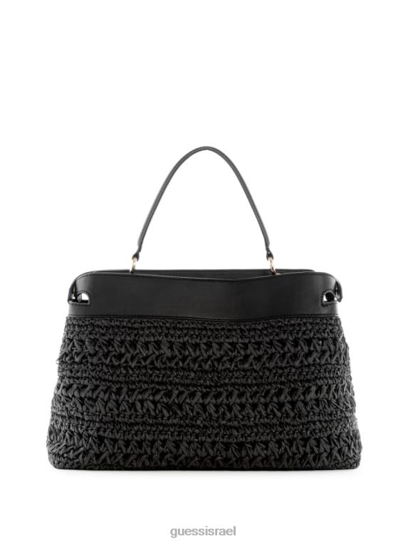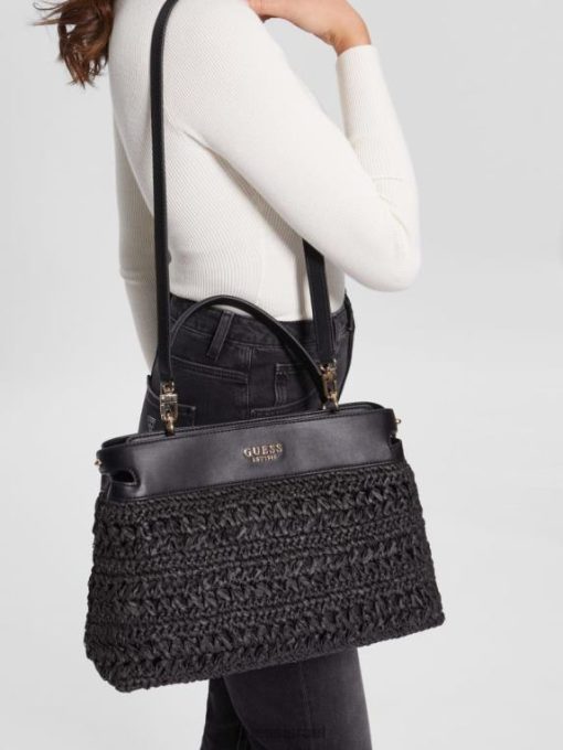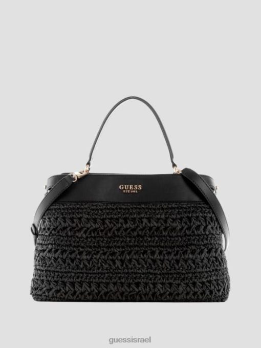 GUESS נשים ילקוט קש סרוג ליגוריה F8RV2904 תיקים הדפס פרחוני שחור