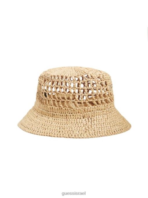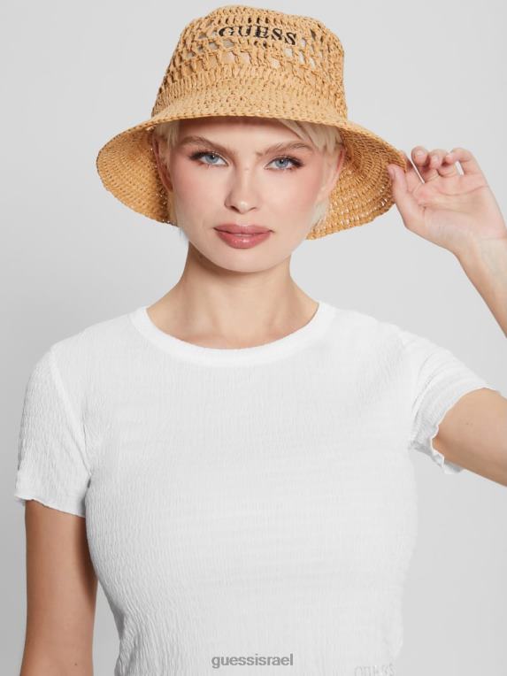 GUESS נשים כובע דלי קש מיראז’ F8RV3782 אבזר לבן