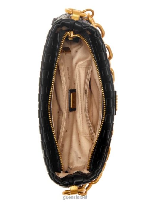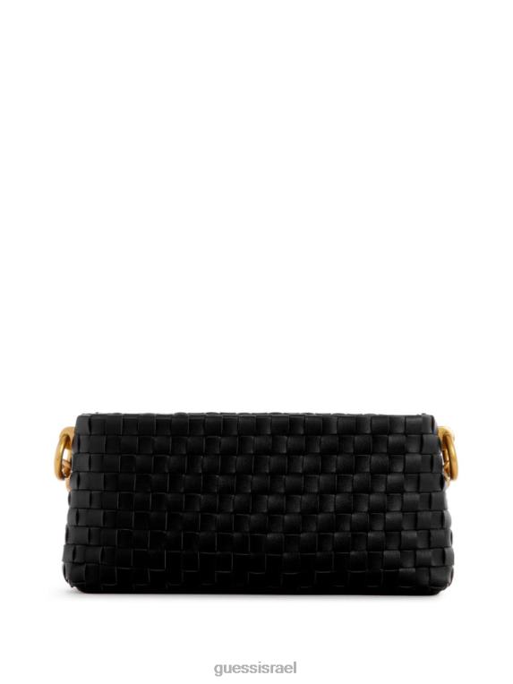GUESS נשים מיני רוכסן קרוסבודי ארוג ליסבט F8RV2819 תיקים הדפס פרחוני שחור