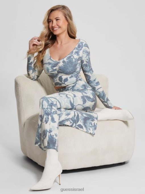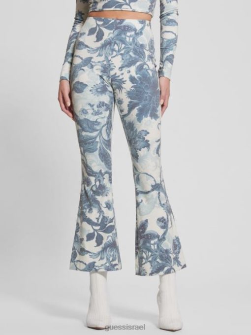 GUESS נשים מכנסיים פרחוניים מתרחבים של אסטפניה F8RV2140 לבוש הדפס פרחים פורצלן bl
