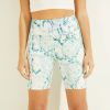 GUESS נשים מכנסי מידי קצרים משנת 1981 F8RV77 לבוש חזזית עלה ירוק רב