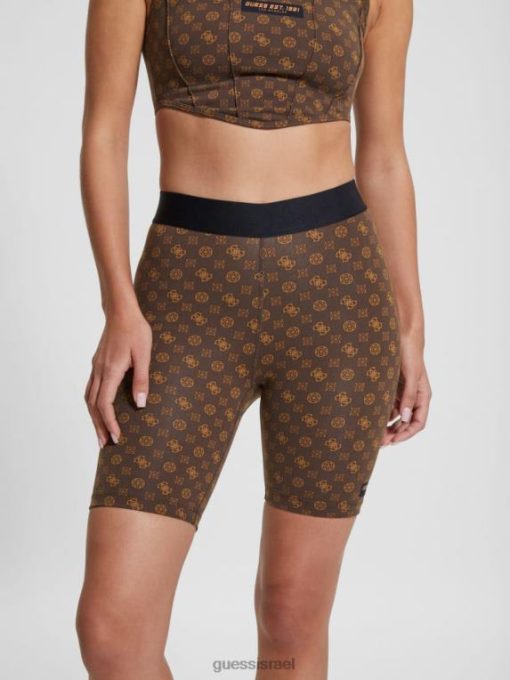 GUESS נשים מכנסי אופנוענים אגי F8RV2150 לבוש אולוגרמה חומה
