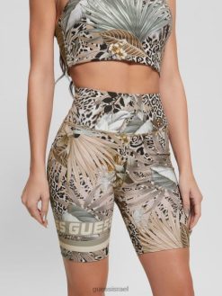 GUESS נשים מכנסי מידי קצרים משנת 1981 F8RV77 לבוש חזזית עלה ירוק רב