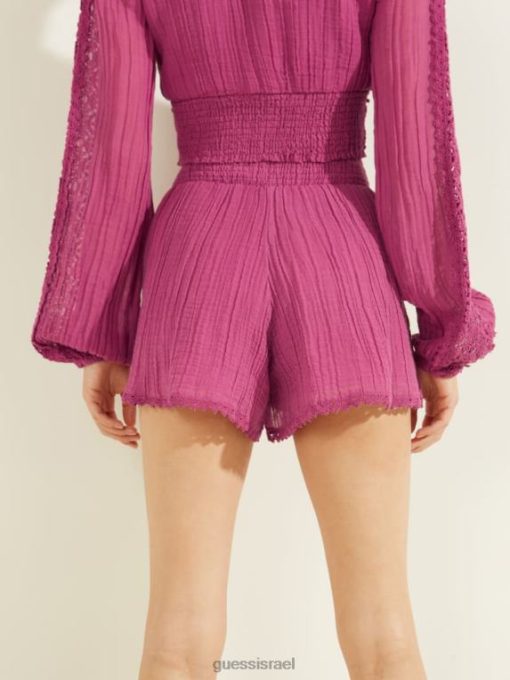 GUESS נשים מכנסי גזה קצרים של אביגיל F8RV2374 לבוש רב דרקון סגול