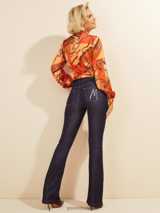 GUESS נשים מכנס ג’ינס רחב רגליים לירי F8RV2048 לבוש שטיפת גיר