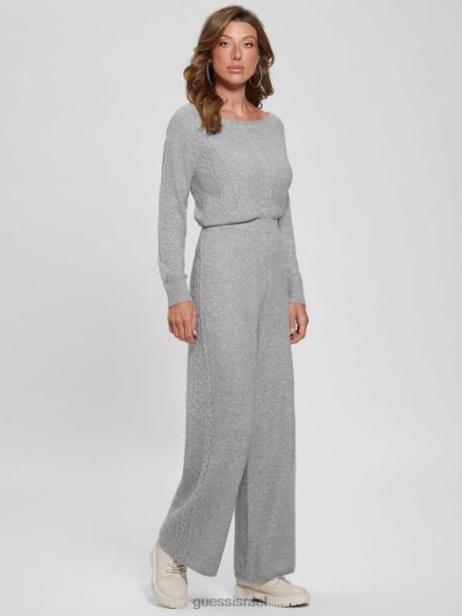 GUESS נשים מכנסי כבלים רחבים של תרזה F8RV2311 לבוש אפור מלאנז’ בהיר