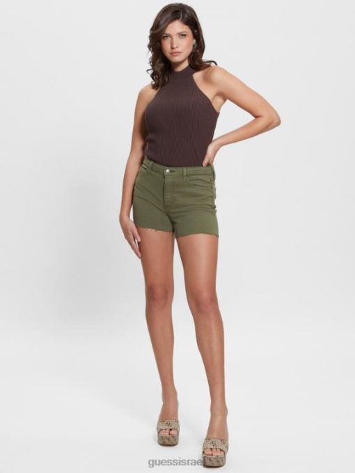 GUESS נשים מכנסי מידי קצרים משנת 1981 F8RV77 לבוש חזזית עלה ירוק רב