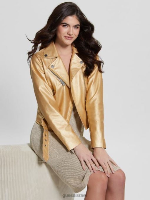 GUESS נשים מעיל אופנוענים מעור מלאכותי של lana F8RV1769 לבוש שילוב של נייר כסף