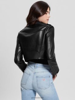 GUESS נשים מעיל מוטו דמוי עור רושל F8RV1746 לבוש שָׁחוֹר