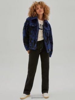 GUESS נשים מעיל משאית שרפה מקורי F8RV1785 לבוש גולשים כחול מולטי