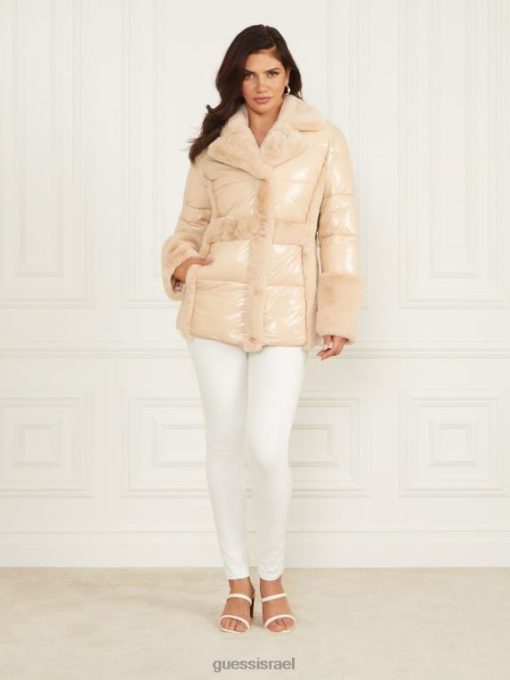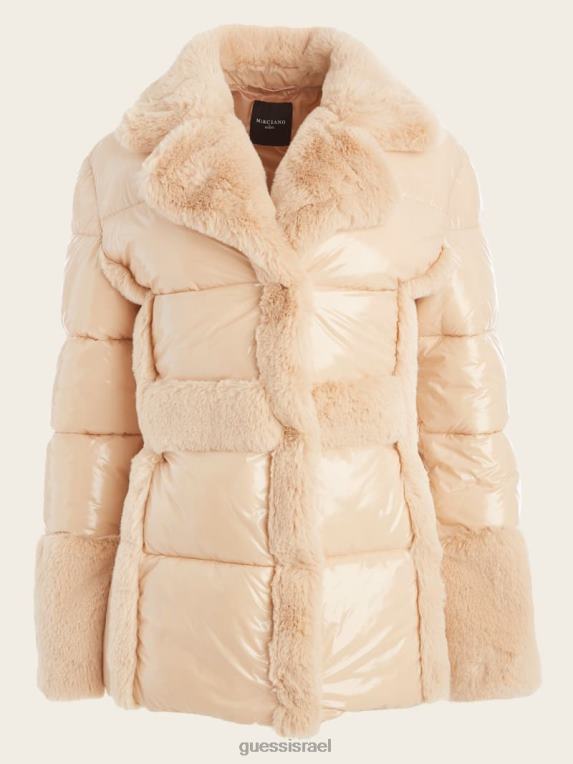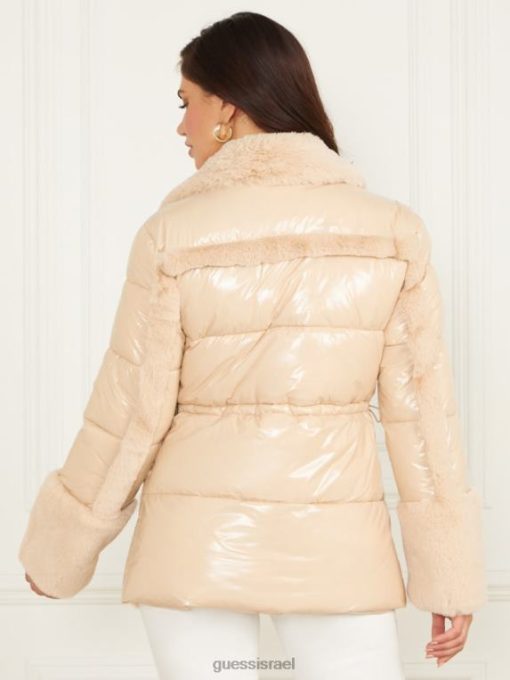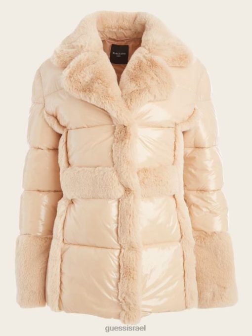 GUESS נשים מעיל נפוח של בסי F8RV1906 לבוש שנהב ניטרלי
