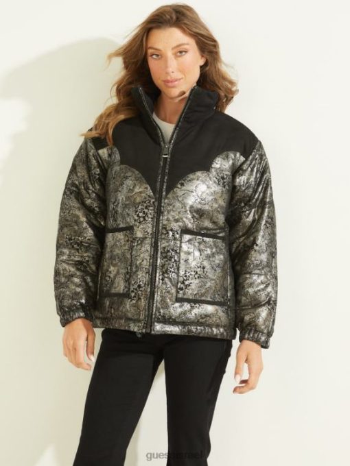 GUESS נשים מעיל פחזנית מעור loise F8RV1887 לבוש שָׁחוֹר