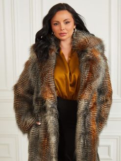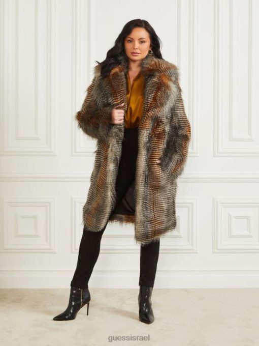 GUESS נשים מעיל פרווה מלאכותית של אלכסנדרה F8RV1860 לבוש פרווה מפוספסת