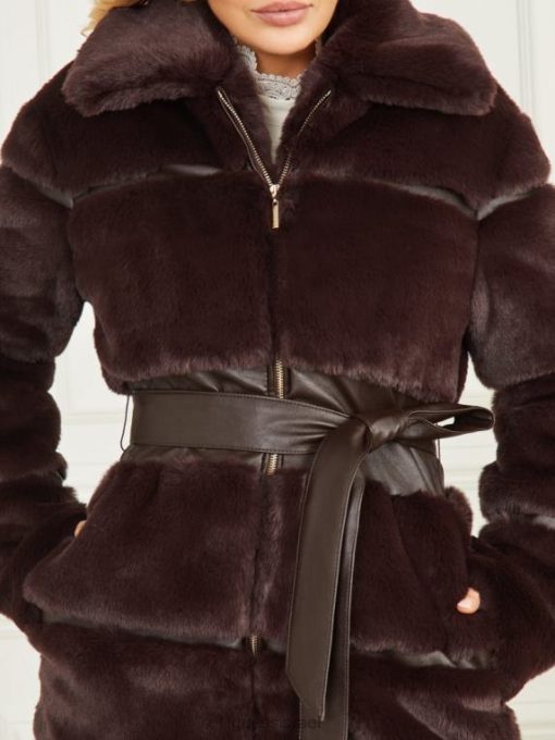 GUESS נשים מעיל פרווה מלאכותית של רוזטה F8RV1856 לבוש מולטי צלי כהה