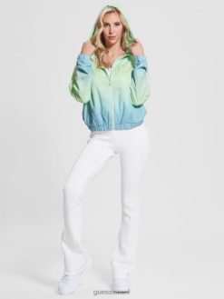 GUESS נשים מעיל רוח זלזלת F8RV2497 לבוש 4 גרם בגוון כחול וירוק
