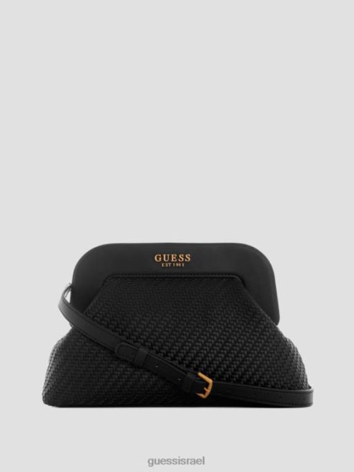 GUESS נשים מצמד מסגרת ארוגה של אבי F8RV2964 תיקים הדפס פרחוני שחור