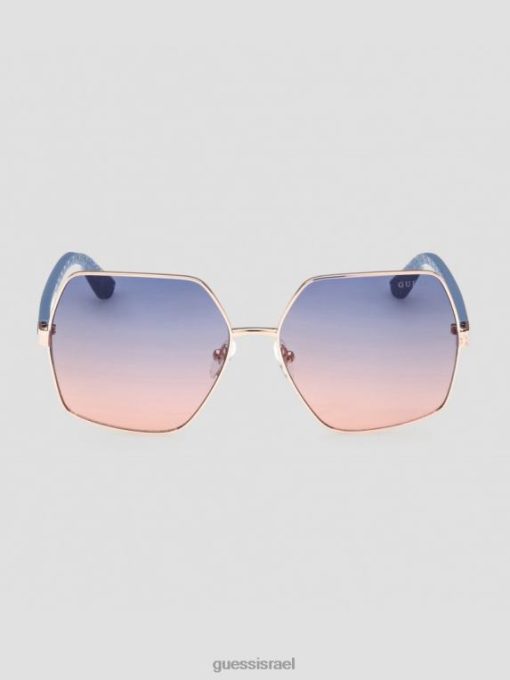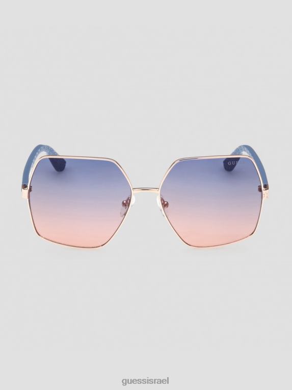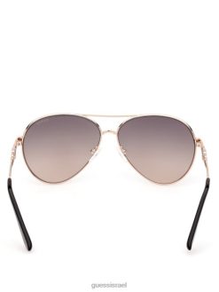 GUESS נשים משקפי שמש בגזרת אוברסייז של אורורה F8RV3762 אבזר זהב ורוד מבריק/שיפוע