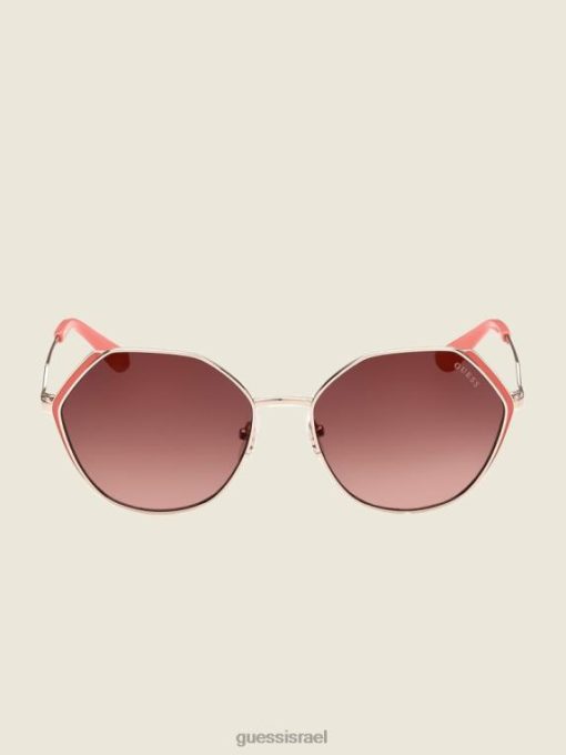 GUESS נשים משקפי שמש גיאומטריים צבעוניים למקדש F8RV3773 אבזר צב