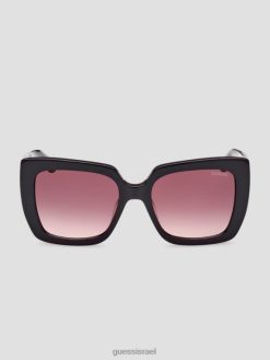 GUESS נשים משקפי שמש מפלסטיק בהדפס לוגו מרובע F8RV3679 אבזר שָׁחוֹר