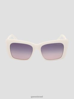GUESS נשים משקפי שמש מפלסטיק בהדפס לוגו מרובע F8RV3651 אבזר 21b-wht