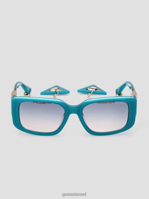 GUESS נשים משקפי שמש מפלסטיק מרובעים עם מחזיק מפתחות F8RV3699 אבזר פּוֹפּ