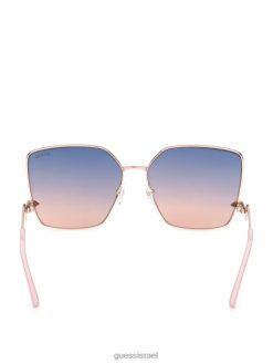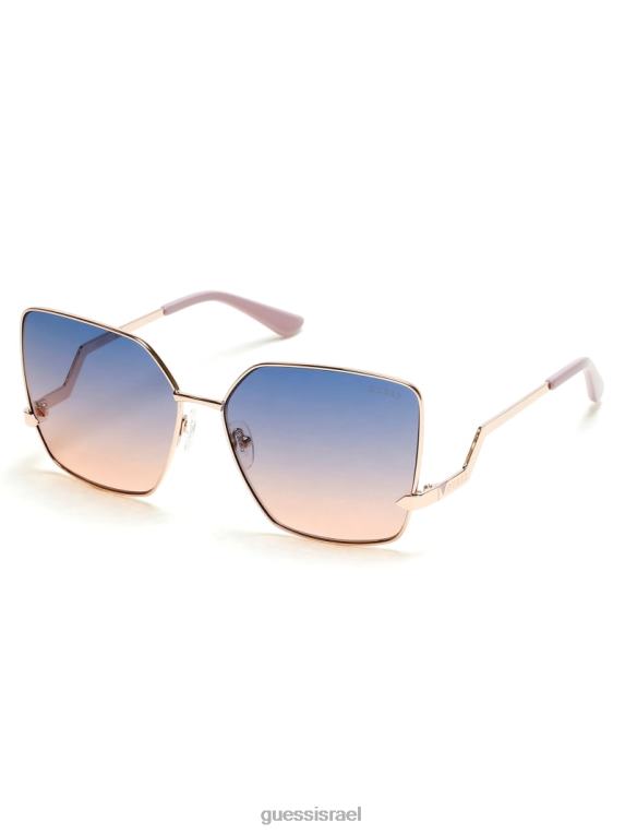 GUESS נשים משקפי שמש מרובעים זיגזג גדולים F8RV3770 אבזר זהב ורוד מבריק/שיפוע