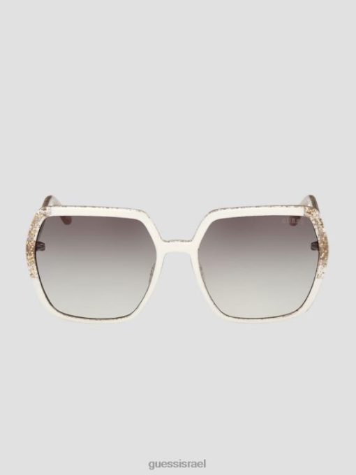 GUESS נשים משקפי שמש מרובעים מפלסטיק נוצצים F8RV3728 אבזר לבן