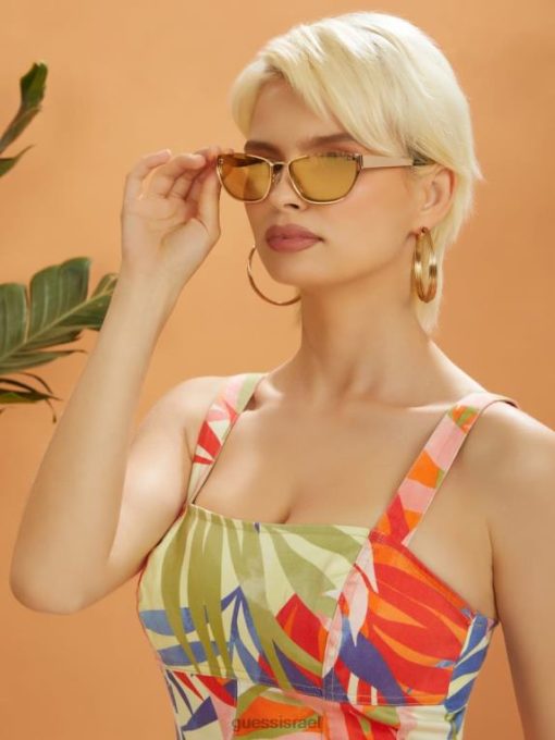 GUESS נשים משקפי שמש מתכת gia F8RV3756 אבזר זהב עם זרוע נזיקית