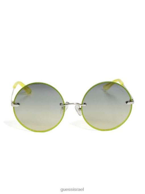 GUESS נשים משקפי שמש עגולים עם עיטור נצנצים של גרייסון F8RV3765 אבזר צהוב