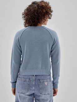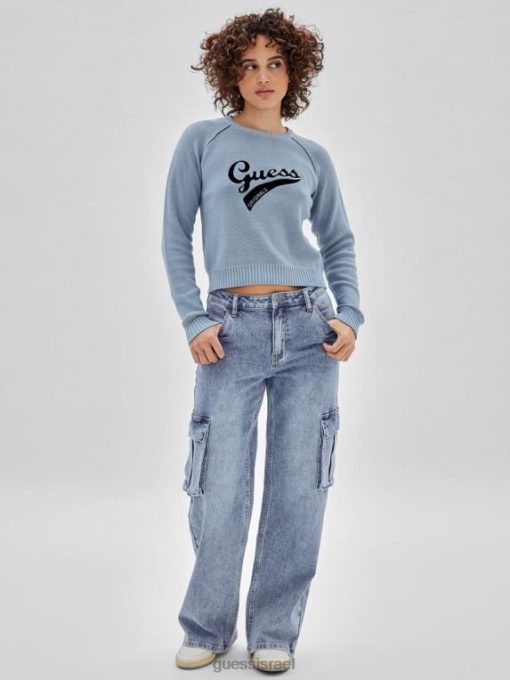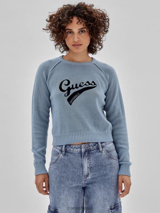 GUESS נשים סוודר לוגו אקו של originals F8RV1267 לבוש כותנה כחולה