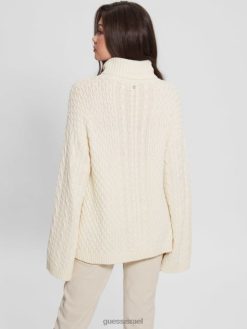 GUESS נשים סוודר צווארון גולף בכבלים של wendi F8RV1574 לבוש יונה לבן