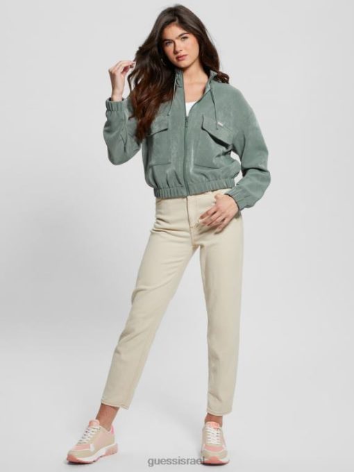 GUESS נשים סוודר רוכסן של euphemia cargo F8RV2462 לבוש צהבהב ורידיאן