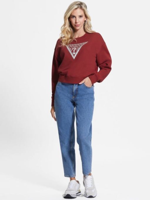 GUESS נשים סווטשירט לוגו רשת קריסטל F8RV1708 לבוש מיץ סלק אדום