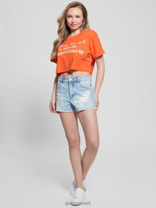 GUESS נשים סלוגן קרופ טי F8RV1073 לבוש סלושי כתום